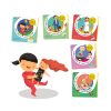 این کتاب کارها و بازیهای روزانهی کودک خردسال با عروسکش را نشان میدهد.